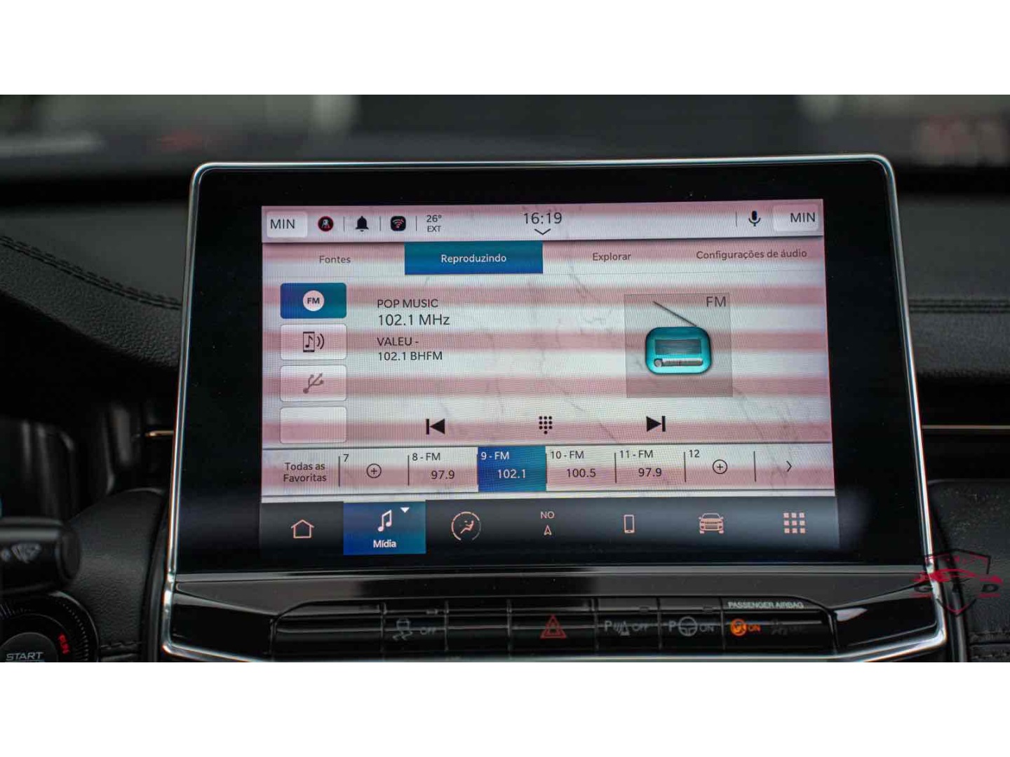 • Controle de som no volante